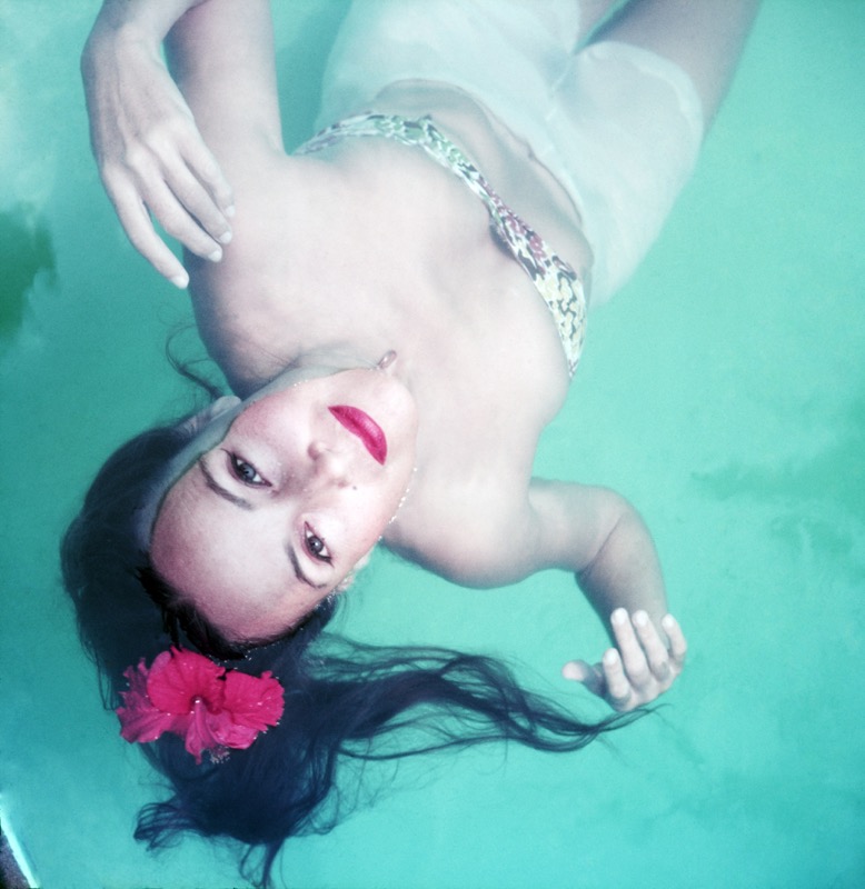 Note this image is available as an Open Edition or Limited Edition Estate Stamped Print (edition size 1/150). Mexican film star Dolores Del Rio (1905 – 1983) swimming in Acapulco, Mexico, 1952. (Photo by Slim Aarons)